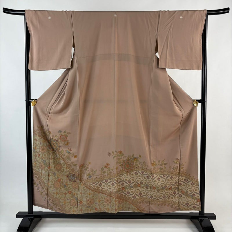 【色留袖】 赤系 ピンクベージュ 秀品 B 約150cm~約159cm 裄丈66cm (M)size 袖丈46cm以下 4000-7980 二万以下
