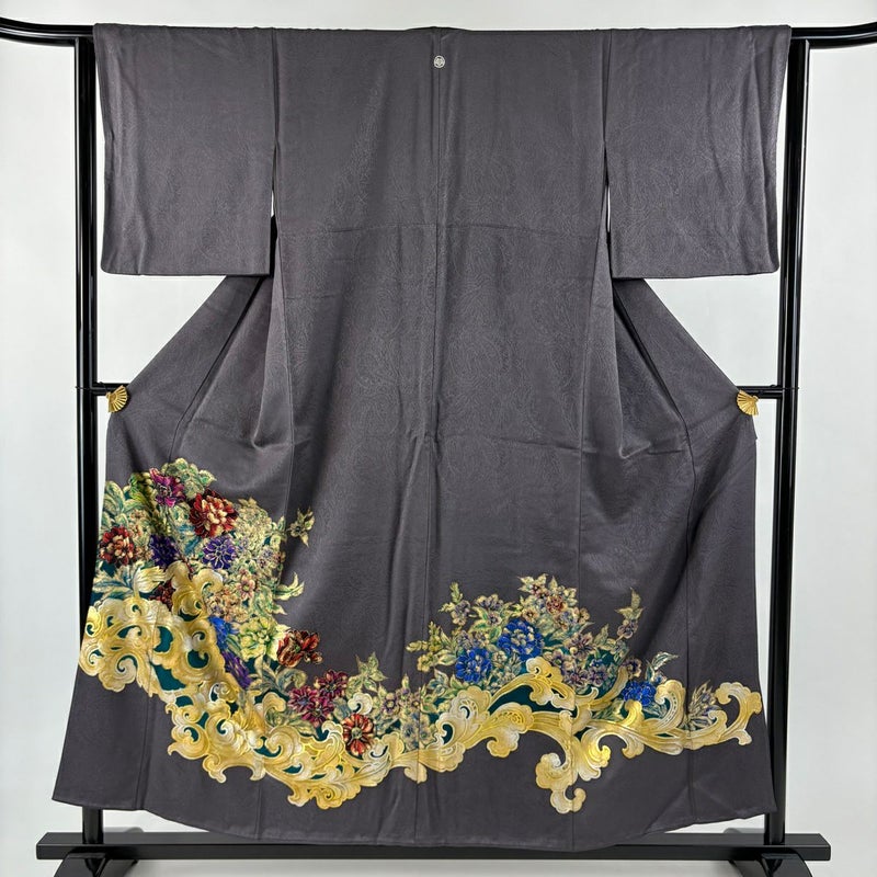 【色留袖】 灰色系 灰紫 名品 B 約150cm~約159cm 裄丈63cm-64cm (M)size 袖丈46cm以下 9990-29990 二万以下
