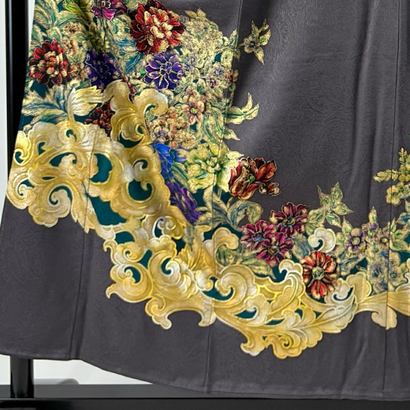 【着物ランク】名品 【素材】正絹 【身丈】約155cm 【裄丈】約64cm 【袖丈】約46.5cm 【袖幅】約32cm 【前幅】約25cm 【後幅】約30.5cm 【サイズ】M 【着物仕立て】袷 【着用時期】10~5月 【状態ランク】ランクB 【着物着用シーン】披露宴出席、式典、パーティー、格式ある茶会
