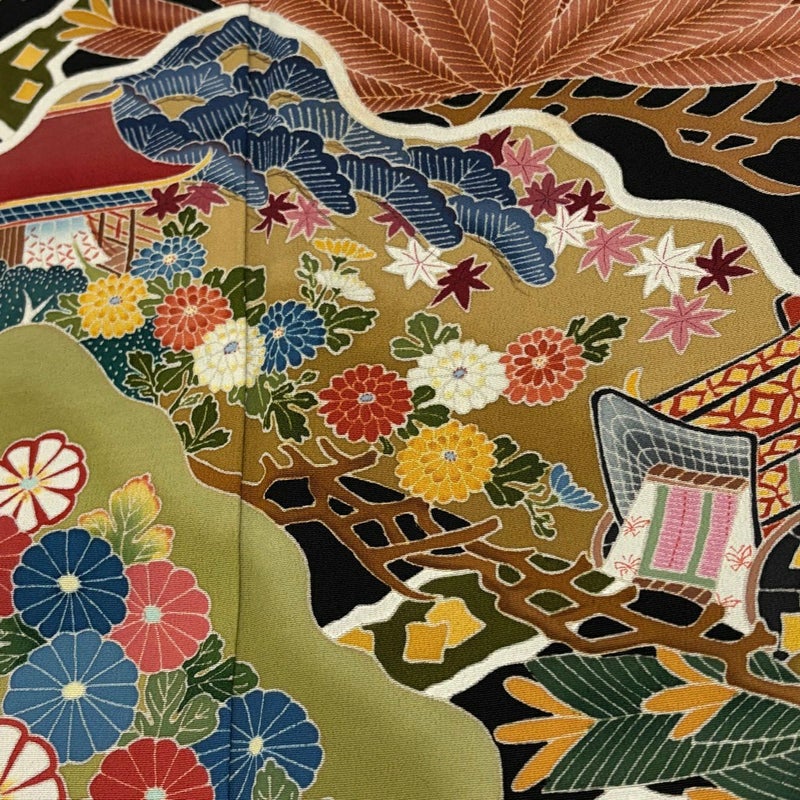 【着物ランク】名品 【素材】正絹 【身丈】約152cm 【裄丈】約62cm 【袖丈】約48.5cm 【袖幅】約32cm 【前幅】約24cm 【後幅】約29.5cm 【サイズ】S 【着物仕立て】袷 【着用時期】10~5月 【状態ランク】ランクB 【着物着用シーン】披露宴の母親/仲人夫人