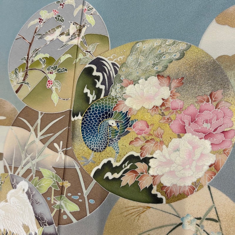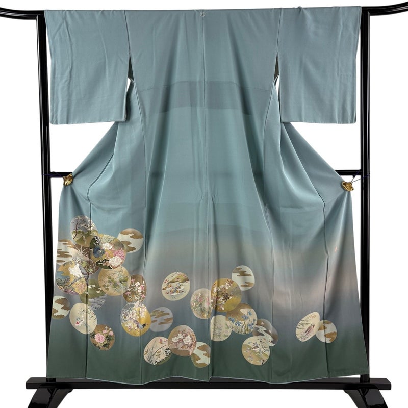 【色留袖】 青系 水色 秀品 B 約150cm~約159cm 裄丈65cm (M)size 袖丈48cm 4000-7980 二万以下