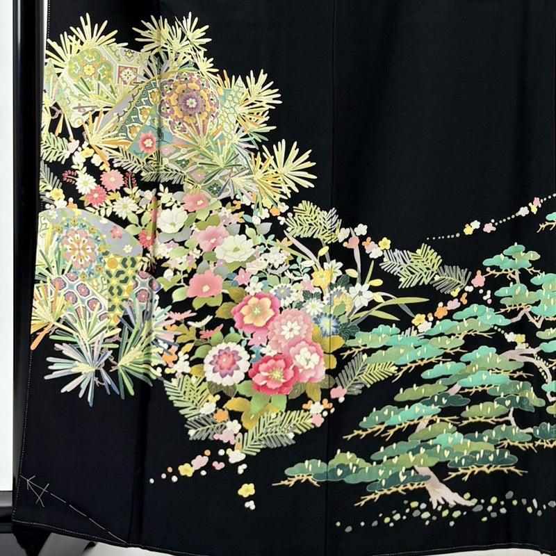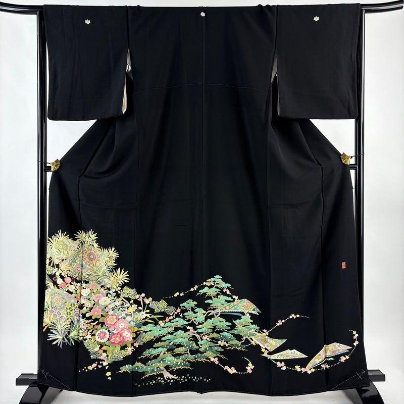 結婚式や披露宴などで親族の第一礼装として用いられる黒留袖でございます。 既婚女性が着用する着物で、最も格の高い礼装でございます。 ※身丈・裄丈の縫込みの長さは測っておりません。 比翼に薄い黄変がございます。 リユース品としては目立った染み傷なく、状態の良いお品でございます。 ※なお、厳しく商品の状態確認を行っておりますが、記載の汚れ以外にも見落とし箇所がある可能性がある旨ご了承いただけますと幸いです。 沢山の商品の中からご覧いただき誠にありがとうございます。