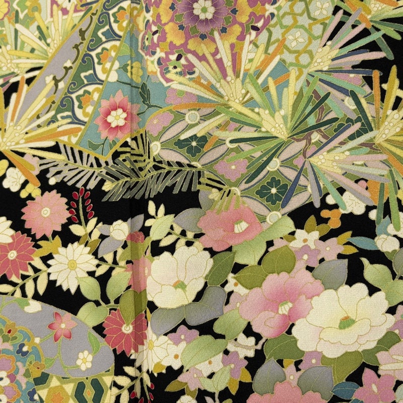 【黒留袖】 黒系 黒 秀品 A 約160cm~約169cm 裄丈66cm (M)size 袖丈49cm 7990-9980 美品 二万以下