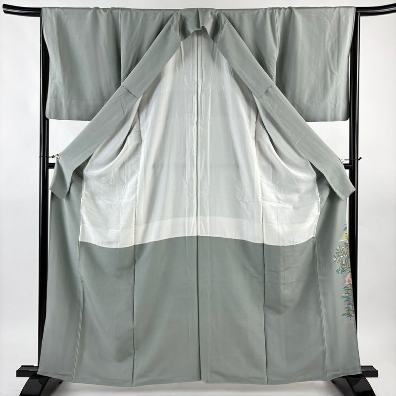 【色留袖】 灰色系 灰緑 秀品 B 約160cm~約169cm 裄丈66cm (M)size 袖丈49cm 4000-7980 二万以下
