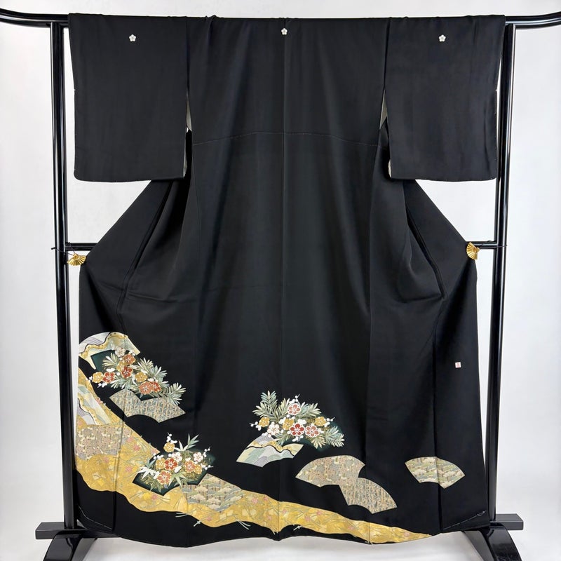 【黒留袖】 黒系 黒 秀品 B 約160cm~約169cm 裄丈63cm-64cm (M)size 袖丈49cm 4000-7980 二万以下