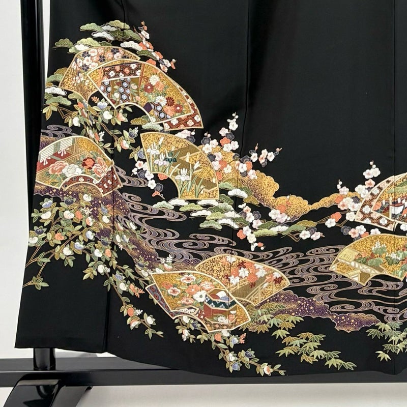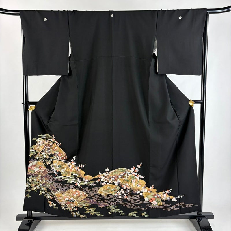 【黒留袖】 黒系 黒 秀品 A 約150cm~約159cm 裄丈67cm-68cm (L)size 袖丈48cm 7990-9980 美品 二万以下