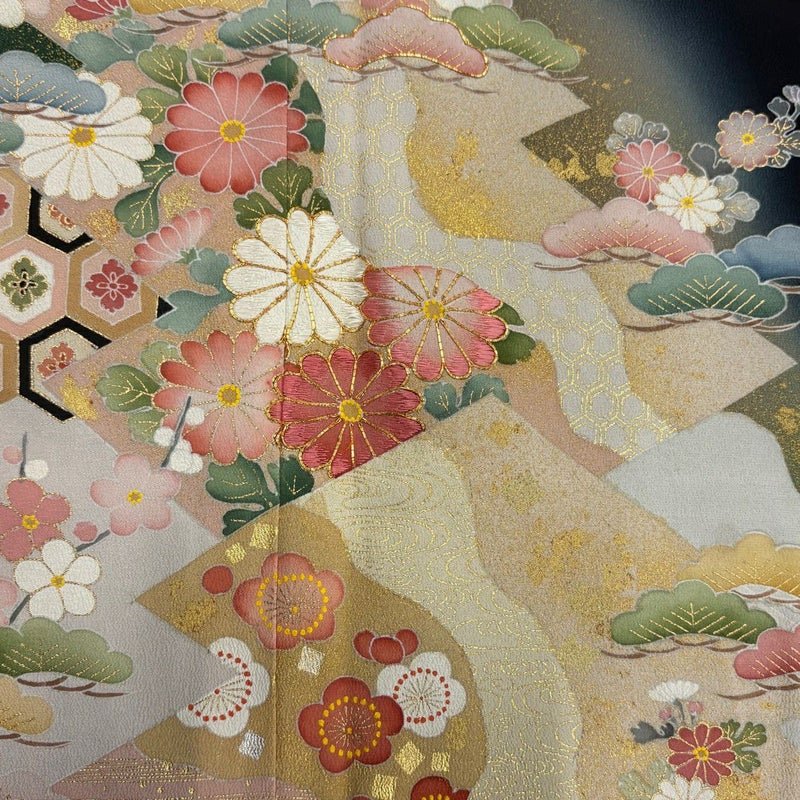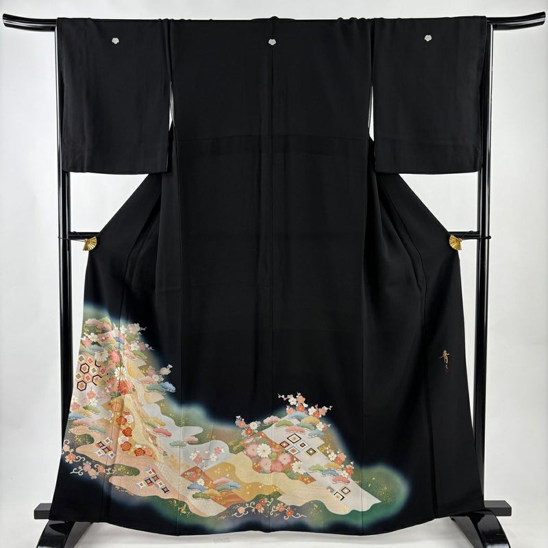 【黒留袖】 黒系 黒 秀品 B 約160cm~約169cm 裄丈65cm (M)size 袖丈48cm 4000-7980 二万以下