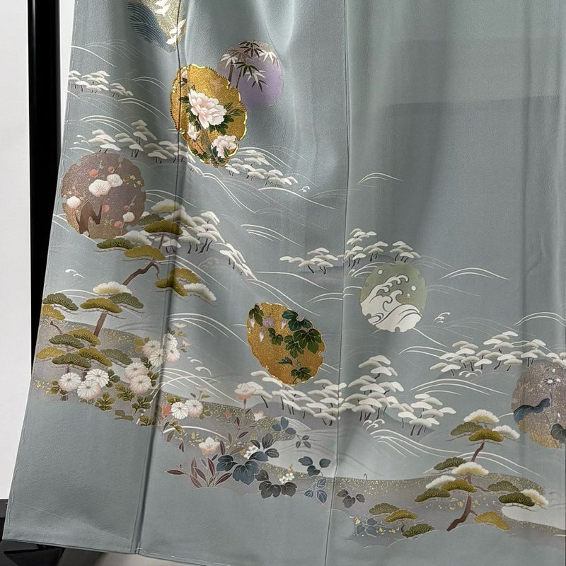 【色留袖】 灰色系 青灰色 秀品 B 約160cm~約169cm 裄丈67cm-68cm (L)size 袖丈47cm 4000-7980 二万以下
