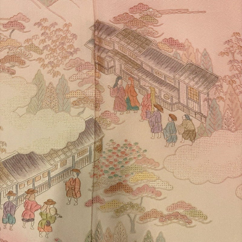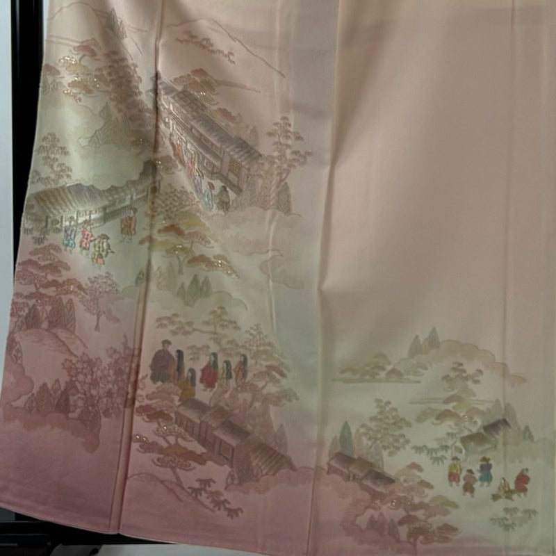 【色留袖】 赤系 薄ピンク 秀品 B 約160cm~約169cm 裄丈65cm (M)size 袖丈50cm-60cm 4000-7980 二万以下