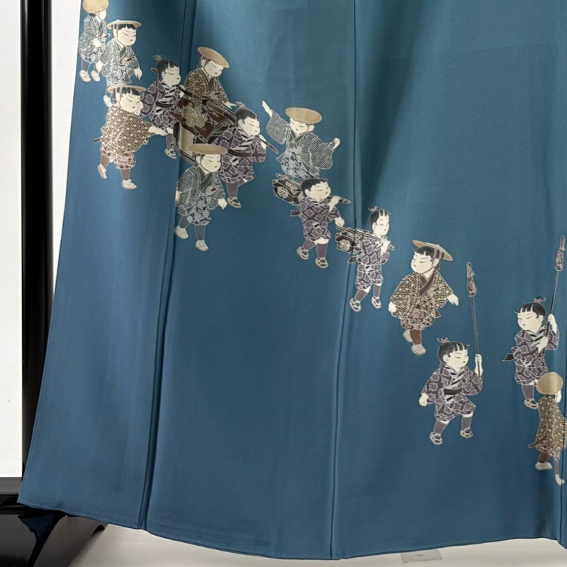 【色留袖】 青系 薄青緑 秀品 B 約160cm~約169cm 裄丈67cm-68cm (L)size 袖丈49cm 4000-7980 二万以下