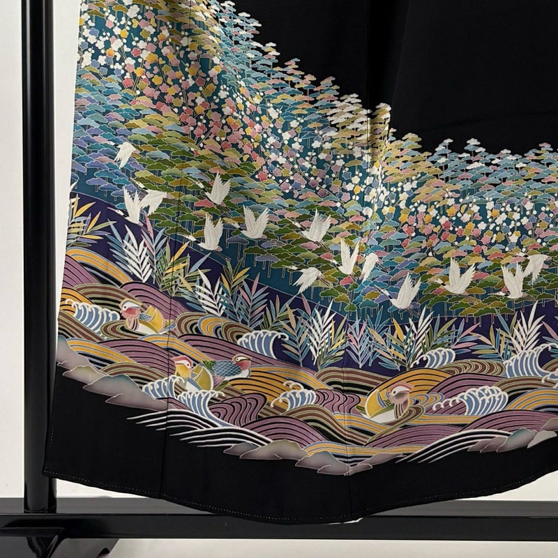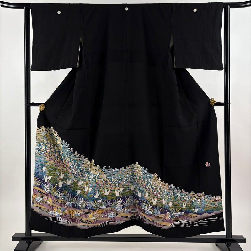 【黒留袖】 黒系 黒 秀品 B 約150cm~約159cm 裄丈63cm-64cm (S)size 袖丈46cm以下 4000-7980 二万以下