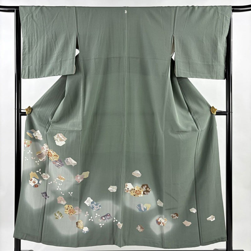 【色留袖】 灰色系 灰緑 秀品 B 約150cm~約159cm 裄丈66cm (M)size 袖丈47cm 4000-7980 二万以下