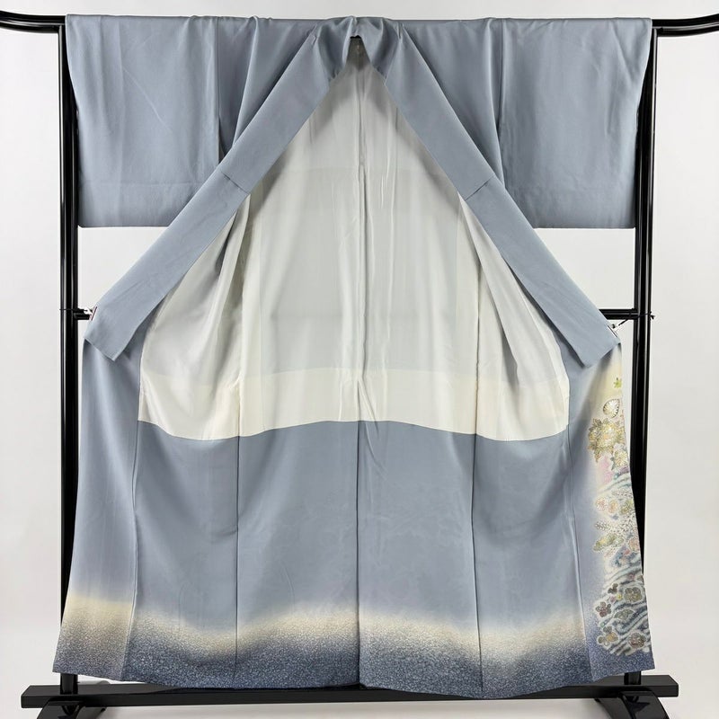 【色留袖】 灰色系 青灰色 秀品 C 約150cm~約159cm 裄丈65cm (M)size 袖丈48cm 4000-7980 二万以下