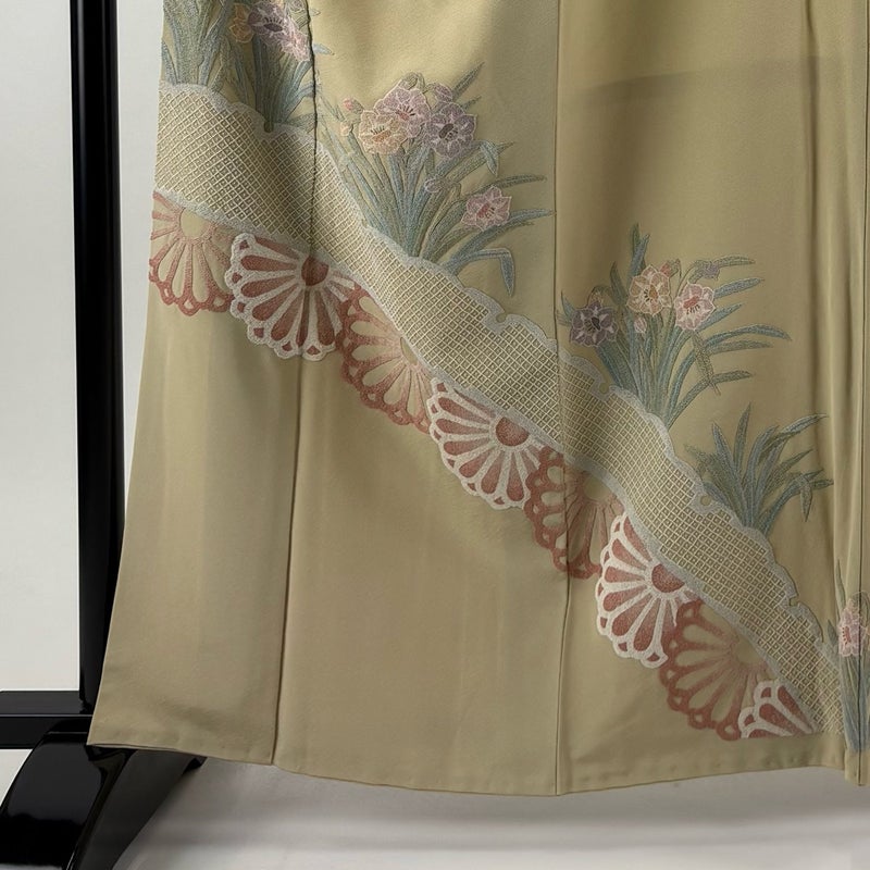 【着物ランク】秀品 【素材】正絹 【身丈】約161.5cm 【裄丈】約65cm 【袖丈】約55cm 【袖幅】約33cm 【前幅】約24.5cm 【後幅】約30cm 【サイズ】M 【着物仕立て】袷 【着用時期】10~5月 【状態ランク】ランクA 【着物着用シーン】披露宴出席、式典、パーティー、格式ある茶会