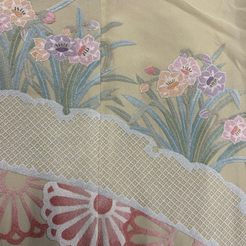 【色留袖】 白系 ベージュ 秀品 A 約160cm~約169cm 裄丈65cm (M)size 袖丈50cm-60cm 7990-9980 美品 二万以下