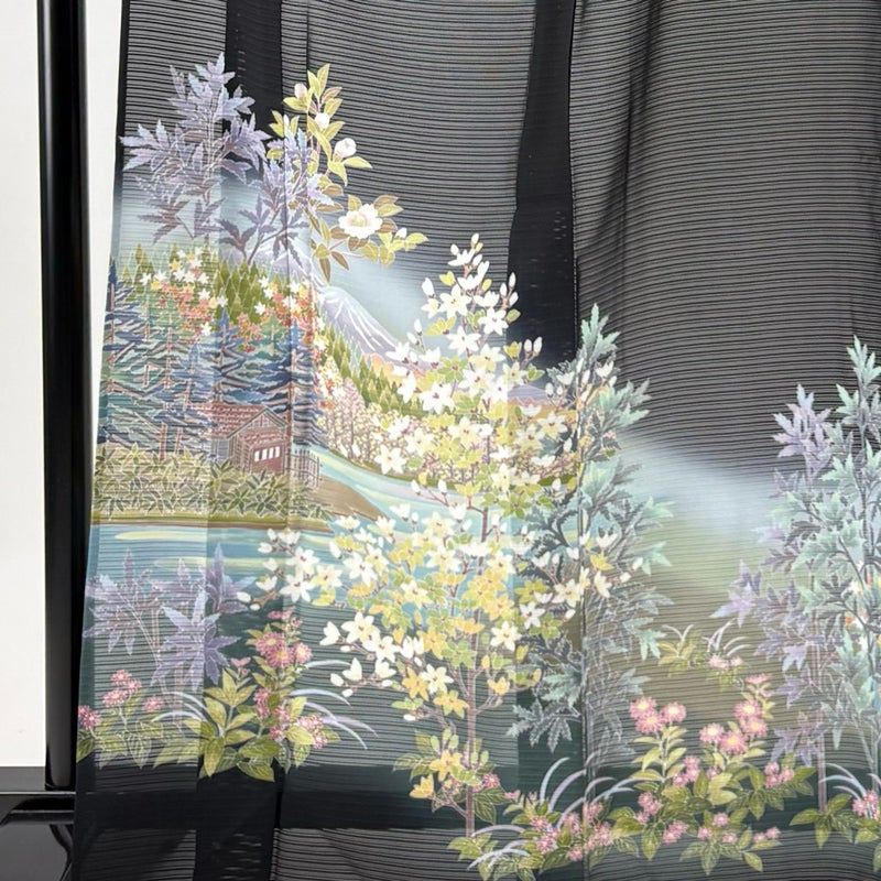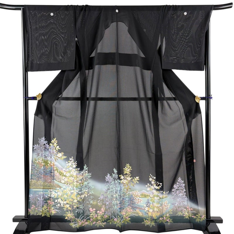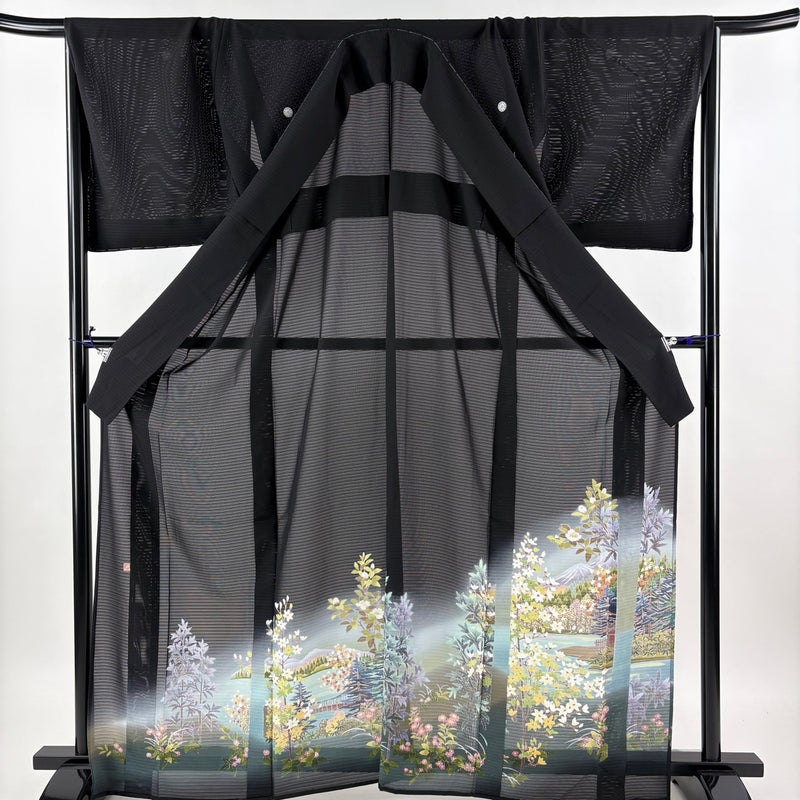 【黒留袖】 黒系 黒 秀品 A 約160cm~約169cm 裄丈69cm以上 (L)size 袖丈48cm 9990-29990 美品 二万以下