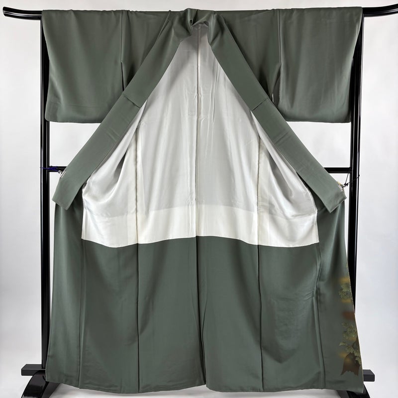 【色留袖】 灰色系 灰緑 名品 A 約160cm~約169cm 裄丈67cm-68cm (M)size 袖丈47cm 9990-29990 美品 二万以下