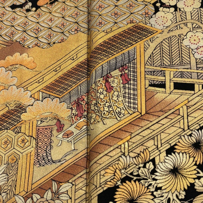 【黒留袖】 黒系 黒 名品 C 約150cm~約159cm 裄丈65cm (M)size 袖丈48cm 9990-29990 二万以下