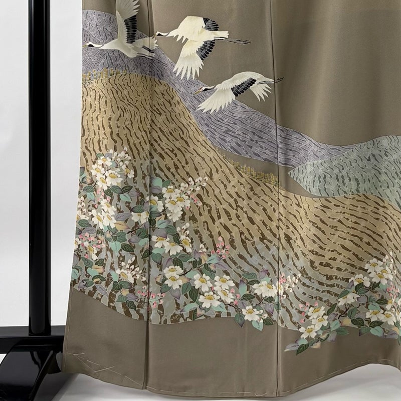 【色留袖】 灰色系 灰茶 名品 A 約160cm~約169cm 裄丈63cm-64cm (M)size 袖丈48cm 9990-29990 美品 二万以下