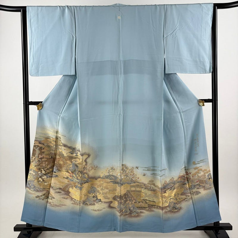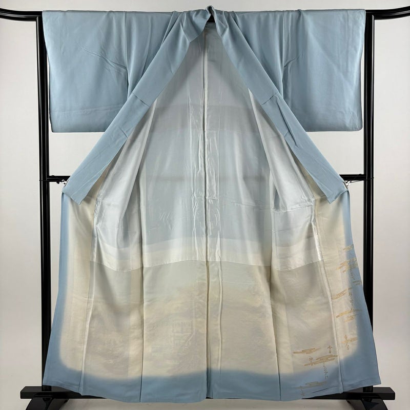 【色留袖】 青系 水色 秀品 B 約150cm~約159cm 裄丈66cm (M)size 袖丈49cm 4000-7980 二万以下