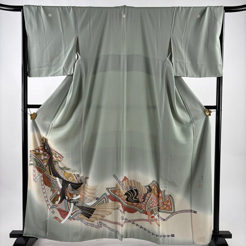 【色留袖】 灰色系 灰緑 秀品 C 約160cm~約169cm 裄丈67cm-68cm (M)size 袖丈48cm 4000-7980 二万以下