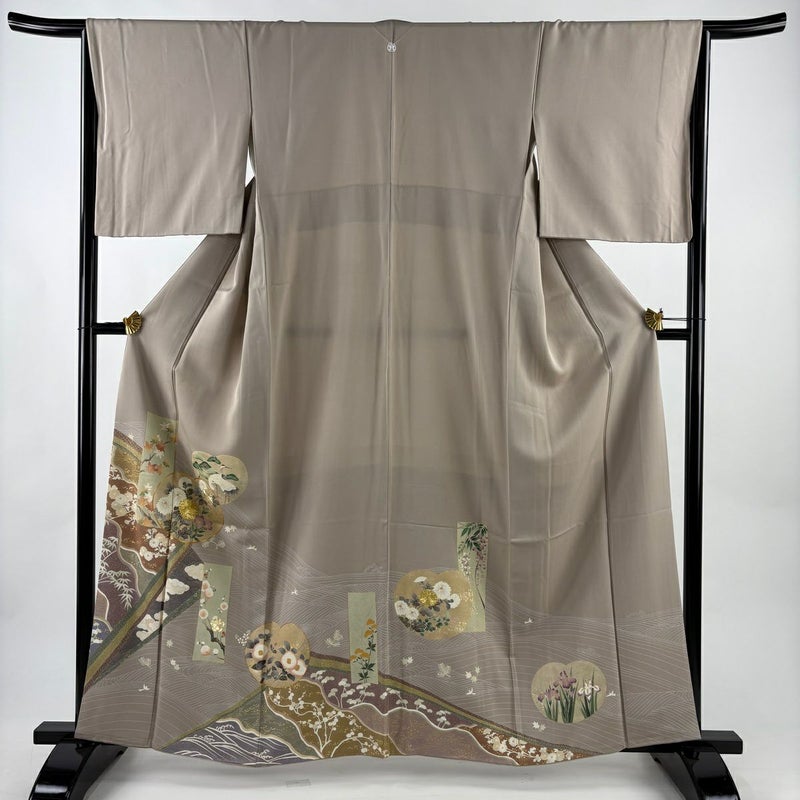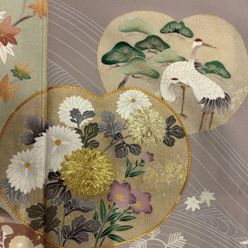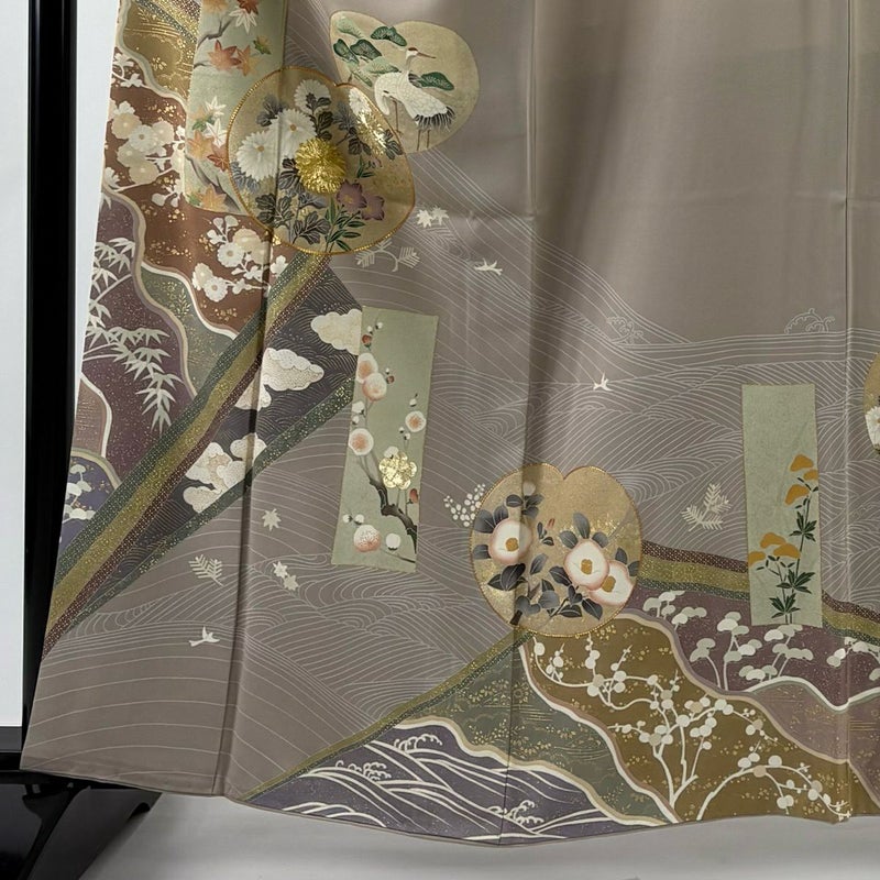 【着物ランク】秀品 【素材】正絹 【身丈】約162.5cm 【裄丈】約65cm 【袖丈】約48cm 【袖幅】約34cm 【前幅】約24cm 【後幅】約29cm 【サイズ】M 【着物仕立て】袷 【着用時期】10~5月 【状態ランク】ランクB 【着物着用シーン】披露宴出席、式典、パーティー、格式ある茶会