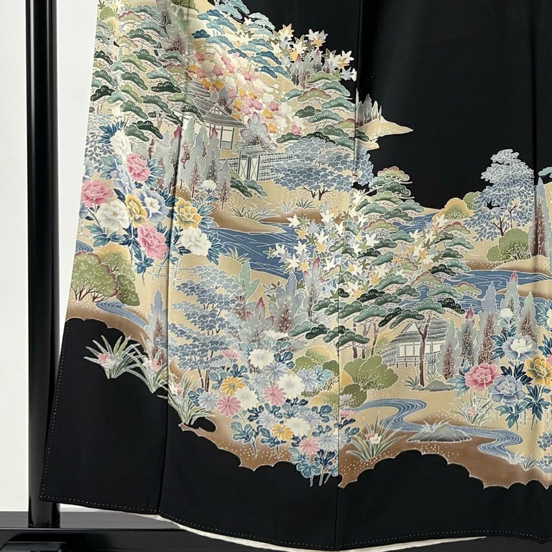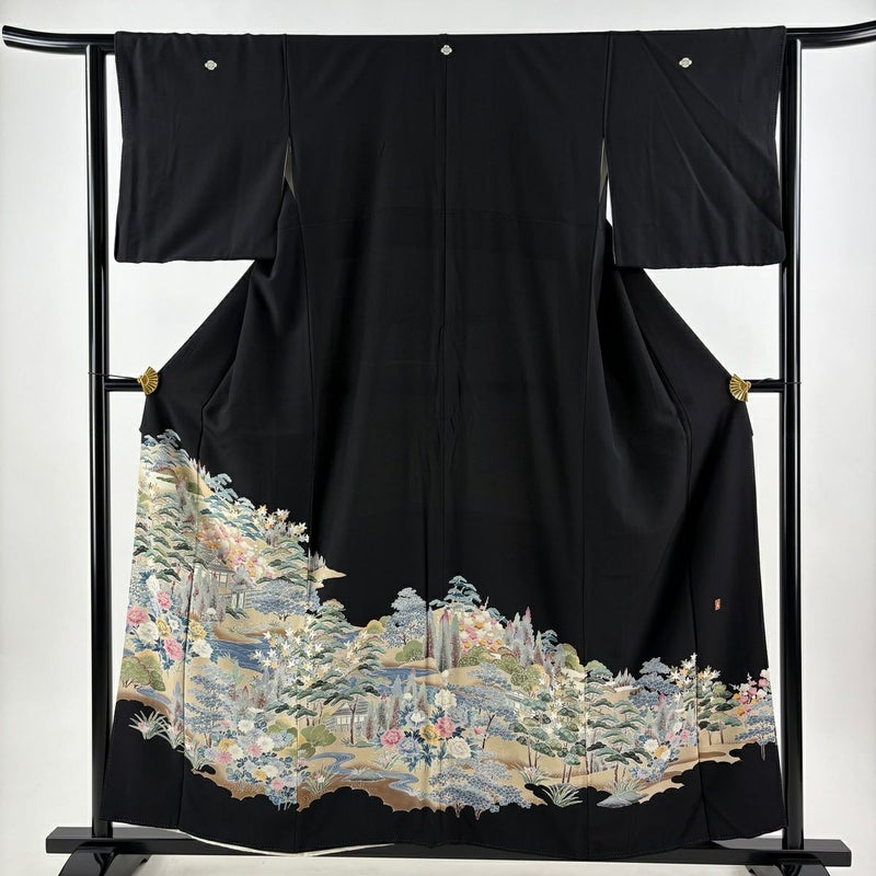 【黒留袖】 黒系 黒 秀品 C 約150cm~約159cm 裄丈63cm-64cm (S)size 袖丈46cm以下 4000-7980 二万以下