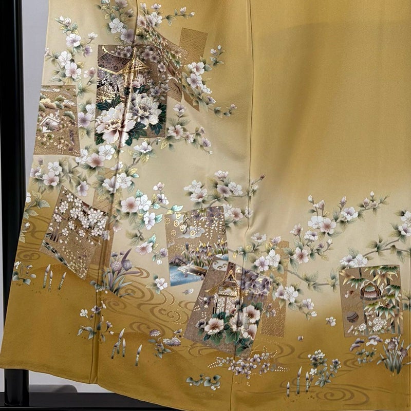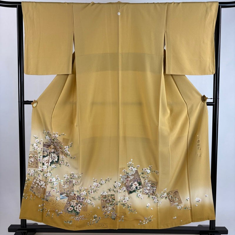 【色留袖】 黄色系 からし色 秀品 B 約150cm~約159cm 裄丈63cm-64cm (M)size 袖丈49cm 4000-7980 二万以下