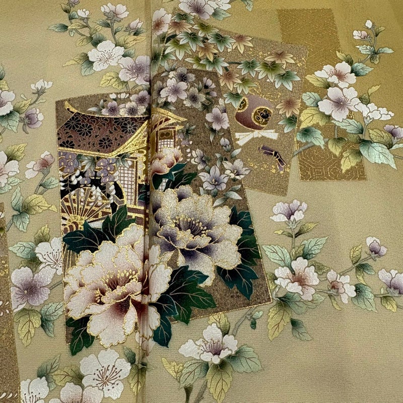 【着物ランク】秀品 【素材】正絹 【身丈】約156cm 【裄丈】約64cm 【袖丈】約49.5cm 【袖幅】約33.5cm 【前幅】約24.5cm 【後幅】約29.5cm 【サイズ】M 【着物仕立て】袷 【着用時期】10~5月 【状態ランク】ランクB 【着物着用シーン】披露宴出席、式典、パーティー、格式ある茶会