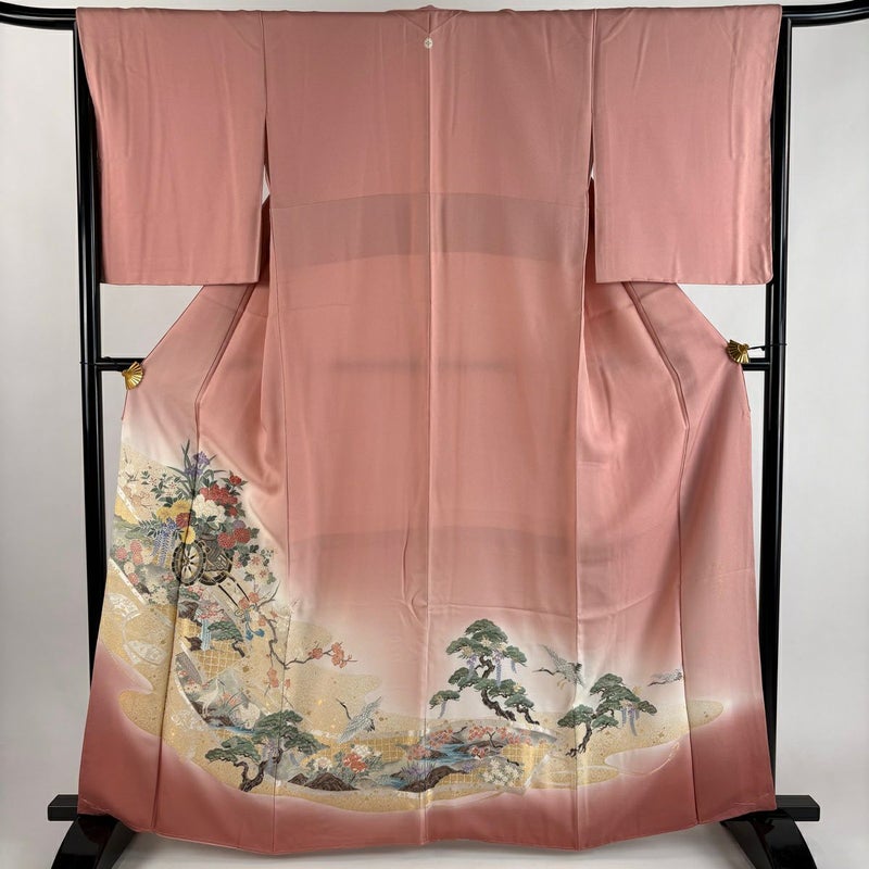 【色留袖】 赤系 ピンク 秀品 B 約160cm~約169cm 裄丈63cm-64cm (M)size 袖丈50cm-60cm 4000-7980 二万以下