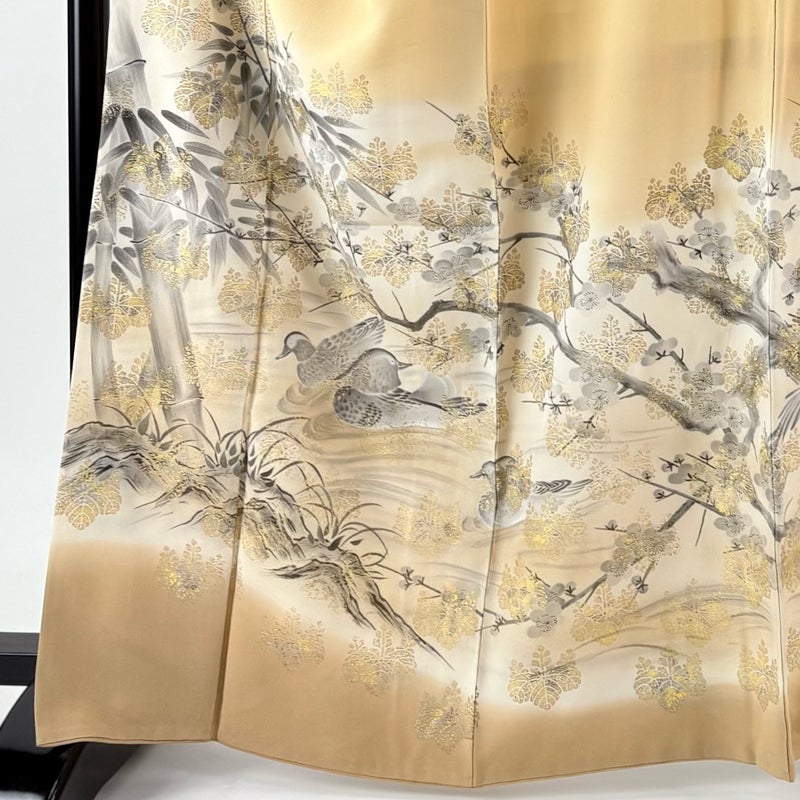 【色留袖】 白系 ベージュ 秀品 B 約160cm~約169cm 裄丈66cm (M)size 袖丈46cm以下 4000-7980 二万以下
