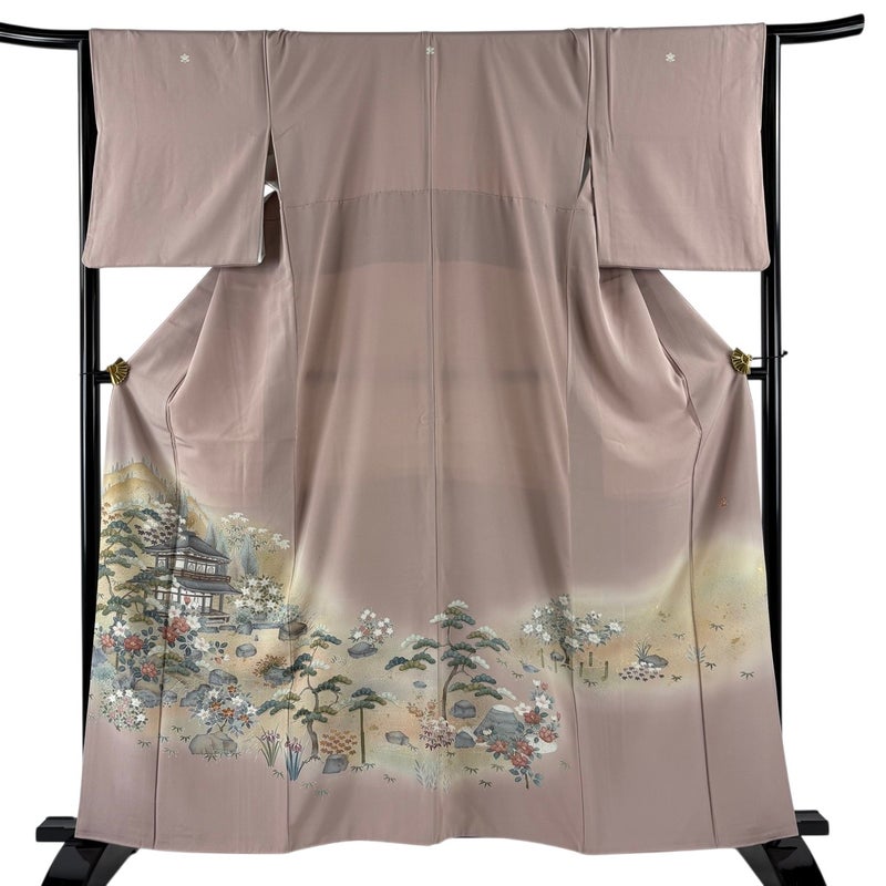 【着物ランク】秀品 【素材】正絹 【身丈】約160cm 【裄丈】約66cm 【袖丈】約49cm 【袖幅】約33.5cm 【前幅】約26cm 【後幅】約30cm 【サイズ】M 【着物仕立て】袷 【着用時期】10~5月 【状態ランク】ランクB 【着物着用シーン】披露宴出席、式典、パーティー、格式ある茶会