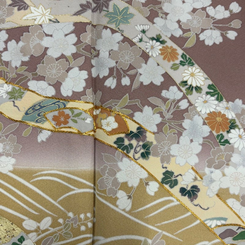 【着物ランク】秀品 【素材】正絹 【身丈】約162.5cm 【裄丈】約66cm 【袖丈】約48.5cm 【袖幅】約34.5cm 【前幅】約25cm 【後幅】約29.5cm 【サイズ】M 【着物仕立て】袷 【着用時期】10~5月 【状態ランク】ランクB 【着物着用シーン】披露宴出席、式典、パーティー、格式ある茶会