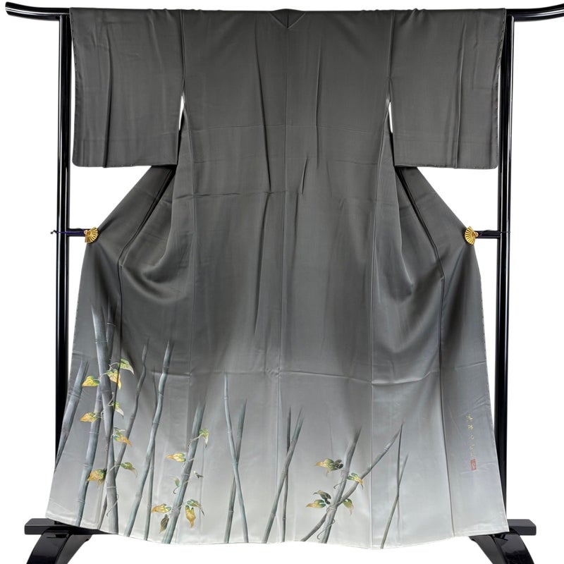 【着物ランク】秀品 【素材】正絹 【身丈】約161.5cm 【裄丈】約64cm 【袖丈】約48.5cm 【袖幅】約34cm 【前幅】約25cm 【後幅】約30cm 【サイズ】M 【着物仕立て】袷 【着用時期】10~5月 【状態ランク】ランクB 【着物着用シーン】披露宴出席、式典、パーティー、格式ある茶会