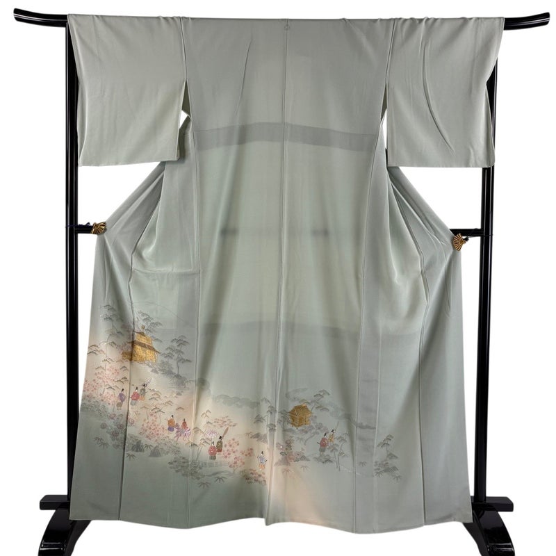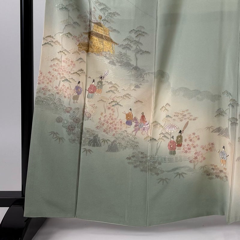 【色留袖】 緑系 薄緑 秀品 B 約160cm~約169cm 裄丈67cm-68cm (L)size 袖丈48cm 4000-7980 二万以下