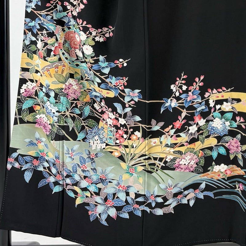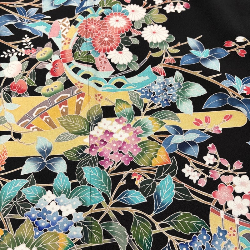 【黒留袖】 黒系 黒 秀品 B 約150cm~約159cm 裄丈63cm-64cm (S)size 袖丈47cm 4000-7980 二万以下