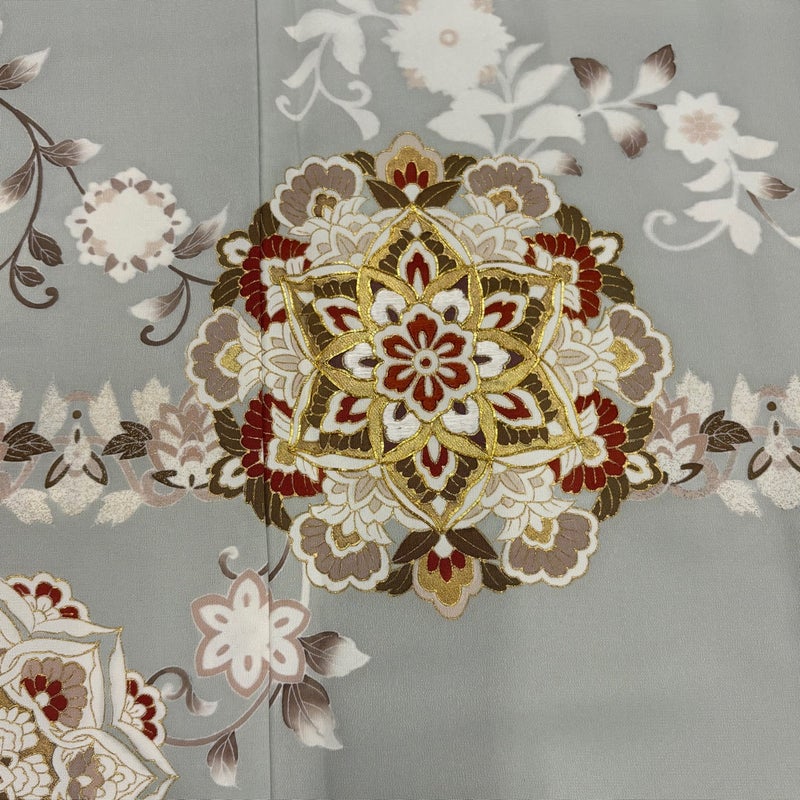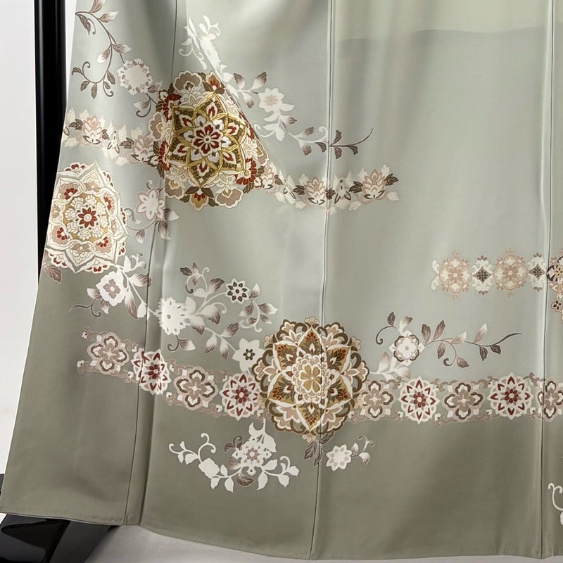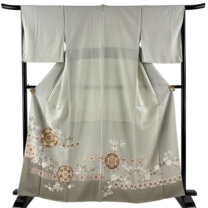 【色留袖】 灰色系 灰緑 秀品 B 約160cm~約169cm 裄丈66cm (M)size 袖丈49cm 4000-7980 二万以下