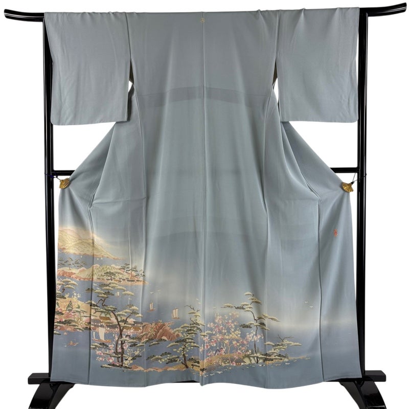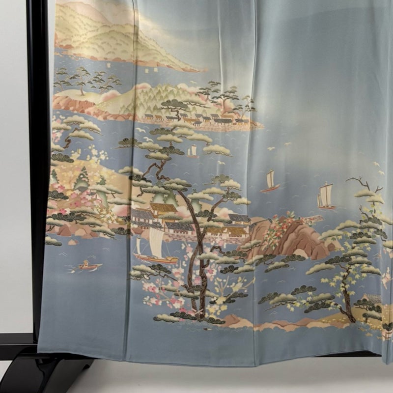 【色留袖】 灰色系 青灰色 秀品 C 約150cm~約159cm 裄丈65cm (M)size 袖丈47cm 4000-7980 二万以下