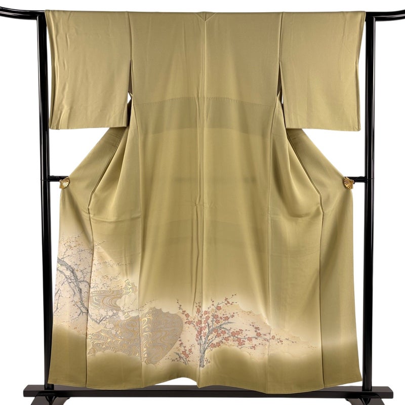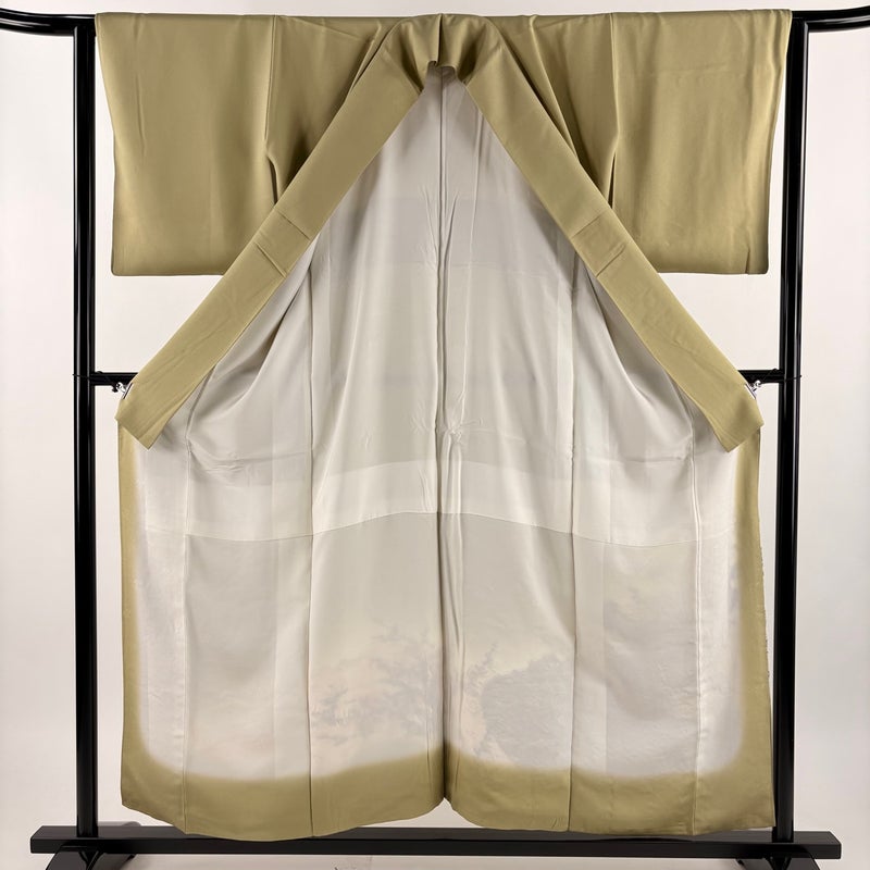【色留袖】 茶系 茶緑色 秀品 A 約150cm~約159cm 裄丈63cm-64cm (S)size 袖丈49cm 7990-9980 美品 二万以下