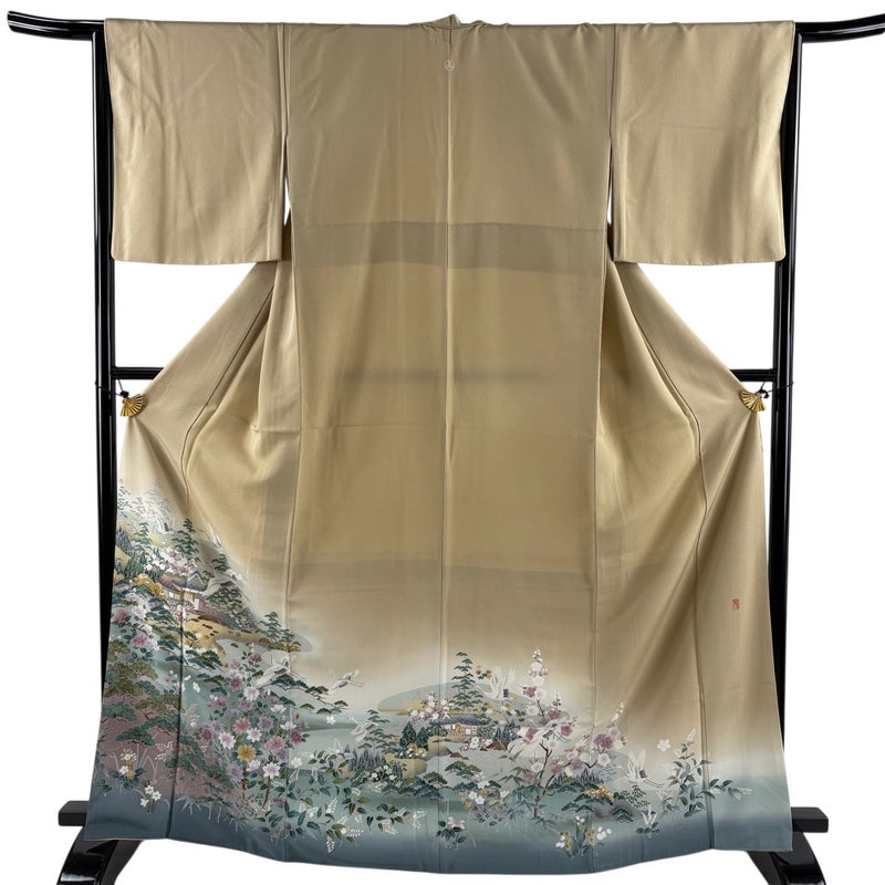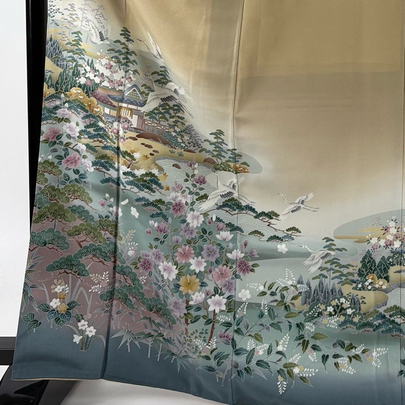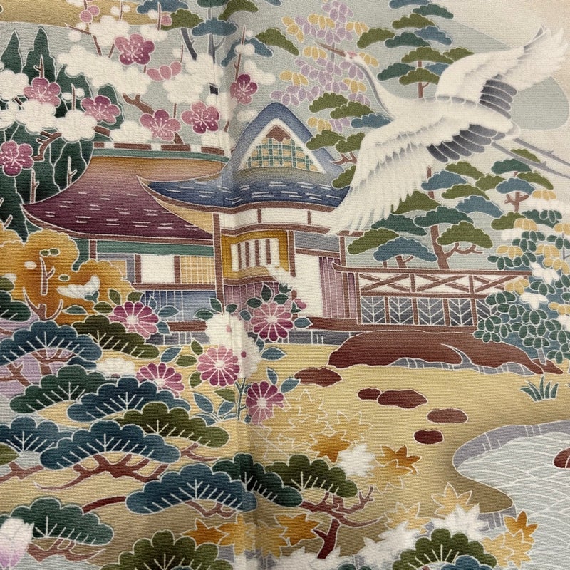 【着物ランク】名品 【素材】正絹 【身丈】約166.5cm 【裄丈】約65.5cm 【袖丈】約46.5cm 【袖幅】約33.5cm 【前幅】約24.5cm 【後幅】約30cm 【サイズ】M 【着物仕立て】袷 【着用時期】10~5月 【状態ランク】ランクB 【着物着用シーン】披露宴出席、式典、パーティー、格式ある茶会