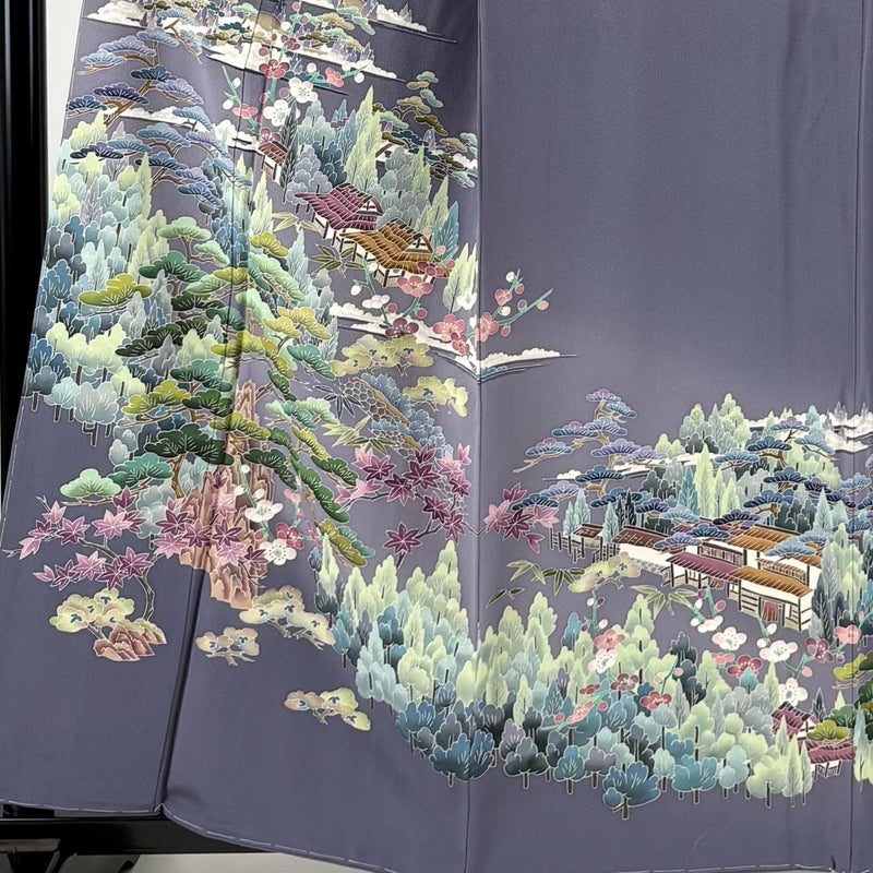 【色留袖】 灰色系 灰紫 名品 B 約150cm~約159cm 裄丈69cm以上 (L)size 袖丈47cm 9990-29990 二万以下
