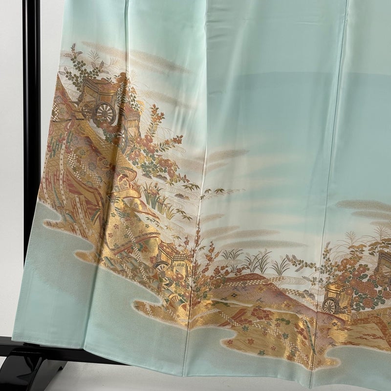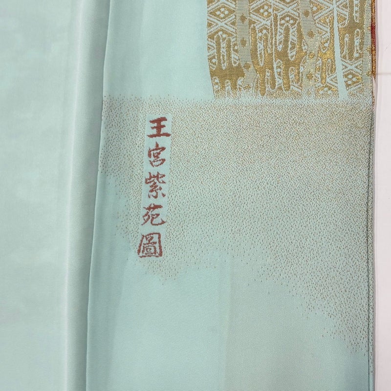 【色留袖】 緑系 薄緑 秀品 B 約160cm~約169cm 裄丈63cm-64cm (M)size 袖丈48cm 4000-7980 二万以下