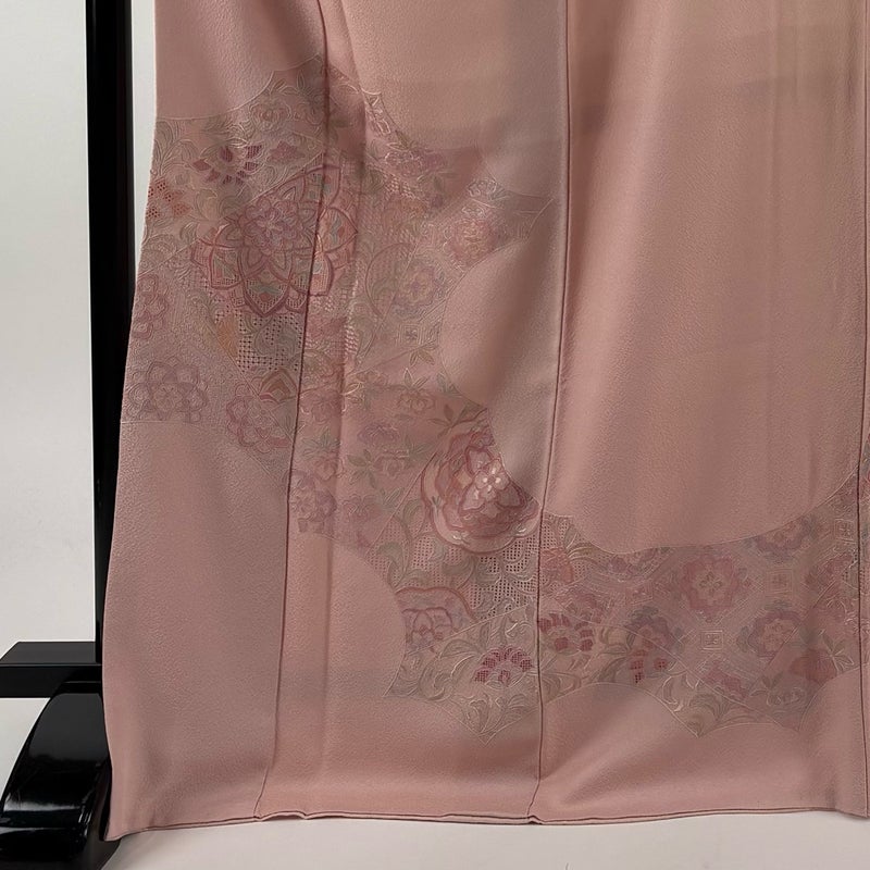 【色留袖】 赤系 ピンク 秀品 A 約170cm~約179cm 裄丈69cm以上 (L)size 袖丈50cm-60cm 7990-9980 美品 二万以下