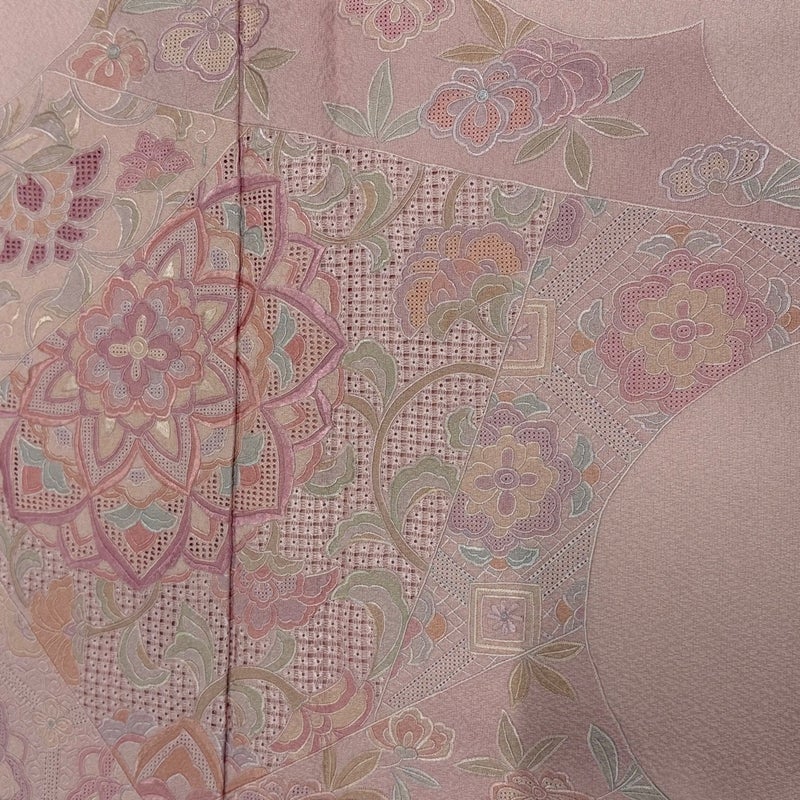 【着物ランク】秀品 【素材】正絹 【身丈】約170cm 【裄丈】約70cm 【袖丈】約51.5cm 【袖幅】約35.5cm 【前幅】約23cm 【後幅】約29.5cm 【サイズ】L 【着物仕立て】袷 【着用時期】10~5月 【状態ランク】ランクA 【着物着用シーン】披露宴出席、式典、パーティー、格式ある茶会