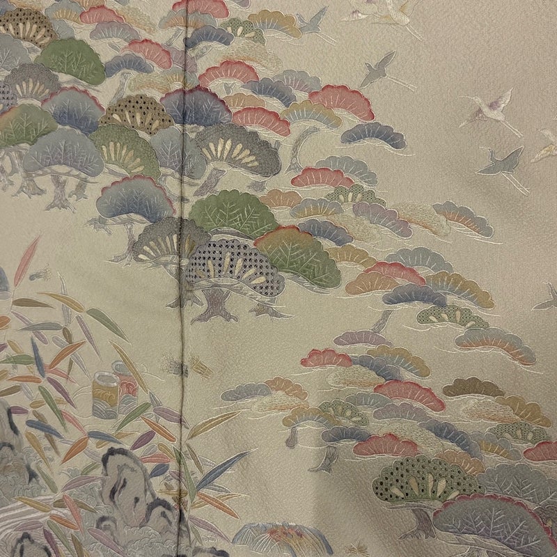 【着物ランク】秀品 【素材】正絹 【身丈】約159cm 【裄丈】約64.5cm 【袖丈】約48cm 【袖幅】約33cm 【前幅】約26cm 【後幅】約30cm 【サイズ】M 【着物仕立て】袷 【着用時期】10~5月 【状態ランク】ランクC 【着物着用シーン】披露宴出席、式典、パーティー、格式ある茶会