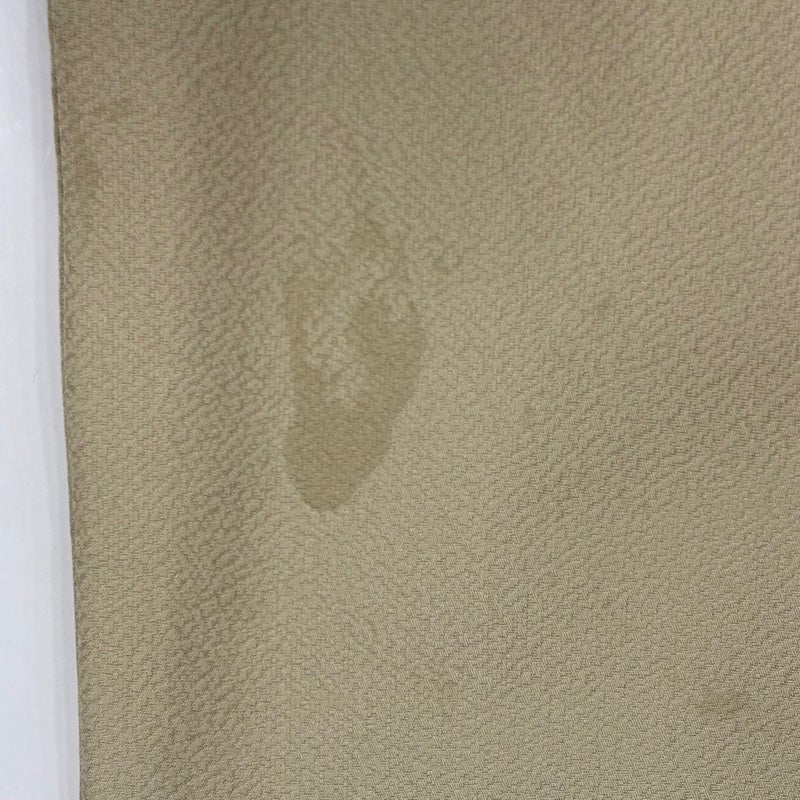 既婚、未婚問わず着用できる色留袖でございます。 汎用性が高いお着物となっておりますので、この機会にぜひいかがでしょうか。 ※身丈・裄丈の縫込みの長さは測っておりません。三つ紋の染め抜き紋です。 比翼はございません。 表地所々にヤケ、表地所々にシミ、左後袖に大きなシミ、衿周りや両袖口中に汚れがございます。 ご購入の際はその点ご留意ください。 ※なお、厳しく商品の状態確認を行っておりますが、記載の汚れ以外にも見落とし箇所がある可能性がある旨ご了承いただけますと幸いです。 沢山の商品の中からご覧いただき誠にありがとうございます。