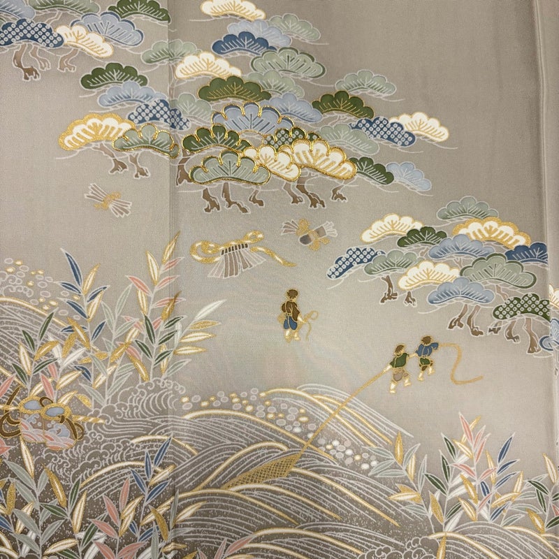 【着物ランク】秀品 【素材】正絹 【身丈】約160cm 【裄丈】約65.5cm 【袖丈】約46.5cm 【袖幅】約34.5cm 【前幅】約25cm 【後幅】約29cm 【サイズ】M 【着物仕立て】袷 【着用時期】10~5月 【状態ランク】ランクB 【着物着用シーン】披露宴出席、式典、パーティー、格式ある茶会