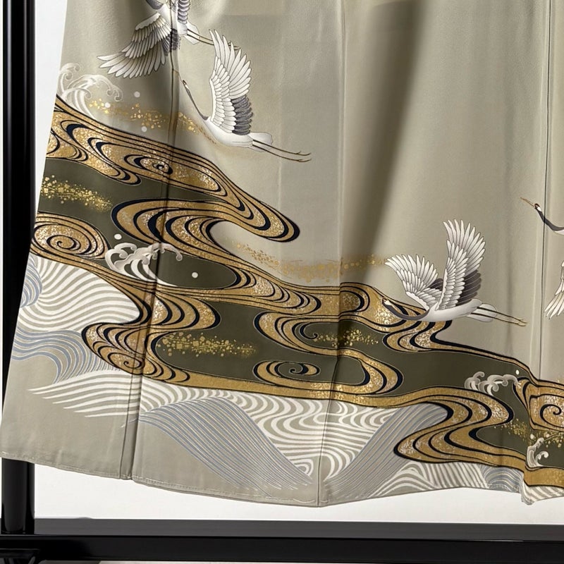 【着物ランク】秀品 【素材】正絹 【身丈】約151.5cm 【裄丈】約66cm 【袖丈】約49cm 【袖幅】約34cm 【前幅】約24.5cm 【後幅】約30cm 【サイズ】M 【着物仕立て】袷 【着用時期】10~5月 【状態ランク】ランクA 【着物着用シーン】披露宴出席、式典、パーティー、格式ある茶会