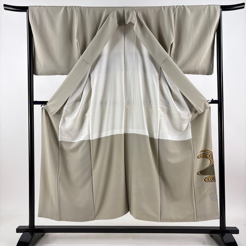【色留袖】 灰色系 灰緑 秀品 A 約150cm~約159cm 裄丈66cm (M)size 袖丈49cm 7990-9980 美品 二万以下