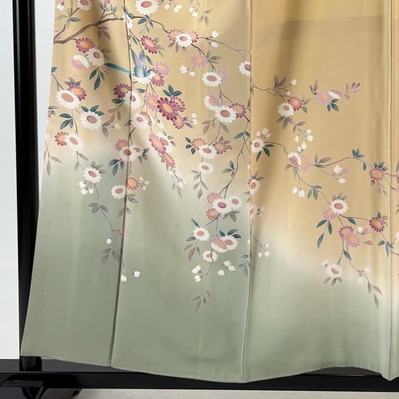 【着物ランク】秀品 【素材】正絹 【身丈】約156cm 【裄丈】約62cm 【袖丈】約48cm 【袖幅】約32.5cm 【前幅】約25.5cm 【後幅】約29cm 【サイズ】S 【着物仕立て】袷 【着用時期】10~5月 【状態ランク】ランクB 【着物着用シーン】披露宴出席、式典、パーティー、格式ある茶会